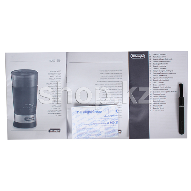 В комплектацию включена небольшая щеточка, с помощью которой следует регулярно удалять остатки кофейного порошка из емкости. Съемных деталей практически нет. Хотя лезвия изготовлены из нержавеющей стали, не рекомендуется допускать их контакт с влагой. По соотношение качества и цены, кофемолка DeLonghi KG 210 является отличным выбором, чтобы приготовить порцию эспрессо перед началом дня или в перерыве между рабочей рутиной!