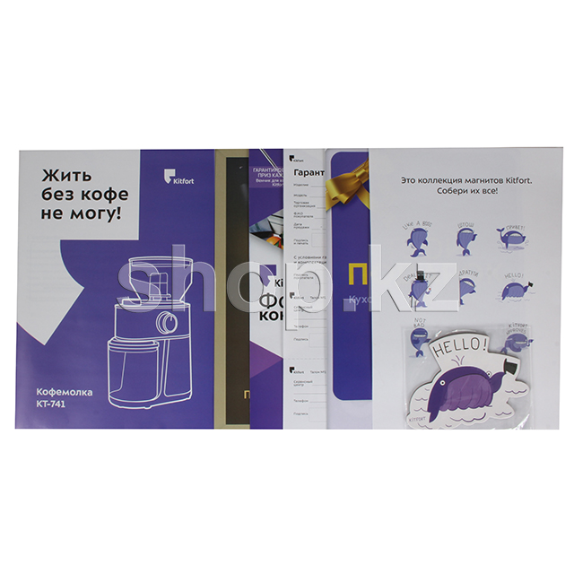 Жерновая кофемолка Kitfort КТ-741 предназначена для помола кофейных зёрен. Она оснащена плоскими металлическими жерновами из углеродистой стали. Благодаря чему, при помоле, кофе не перегревается и не меняет свой вкус.