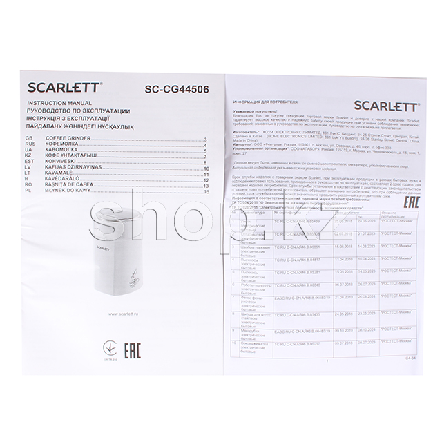 Scarlett SC-CG44506 кофе тартқышы