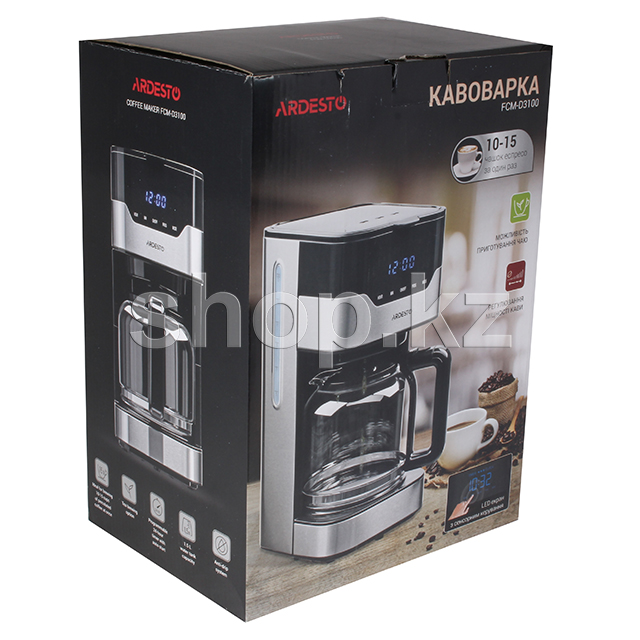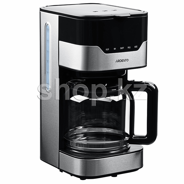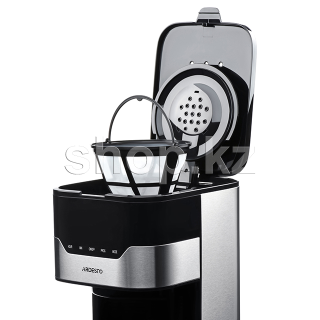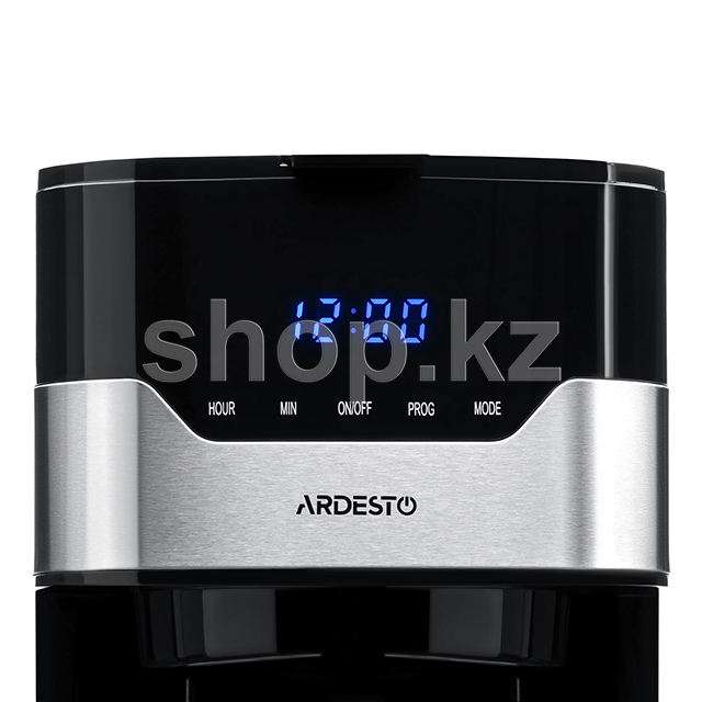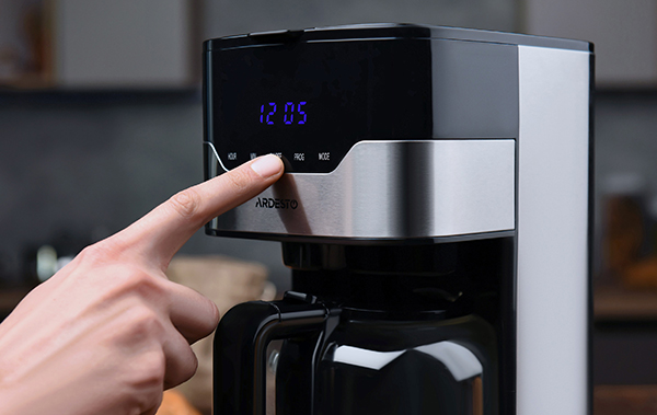 Кофеварка оснащена удобной сенсорной панелью управления со встроенным дисплеем, часами, таймером приготовления и поддерживает выбор крепости напитка. Автоотключение кофеварки происходит через 2 часа после приготовления.