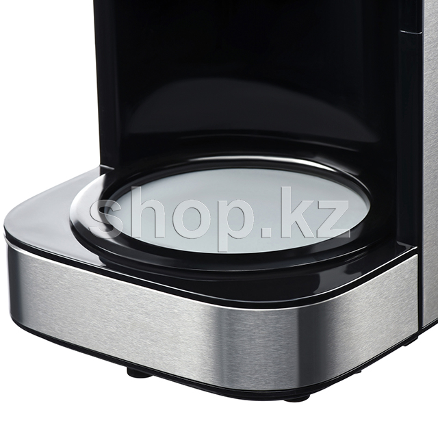 Прозрачный кофейник также вмещает 1.5 л и выполнен из боросиликатного стекла. Для поддержки температуры напитка после приготовления, в нише для кофейника, расположен нагревательный диск с антипригарным покрытием.