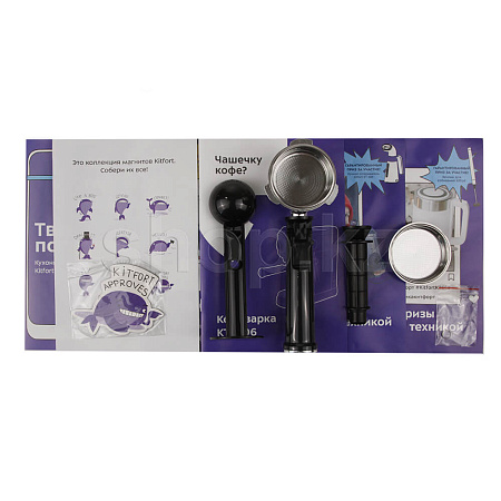 Мерная ложка-темпер поможет наполнить рожок и утрамбовать в нём кофейную таблетку. Металлические фильтры для одной и двойной порции эспрессо с лазерным нанесением отверстий долговечны и не требуют использования каких-либо расходующихся частей.