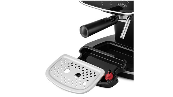 Поддон для сбора капель с решёткой из нержавеющей стали легко снимается, моется и устанавливается обратно. В поддоне установлен красный поплавок. Если поддон заполнился водой, то поплавок всплывет выше решётки, это значит следует слить воду из поддона.