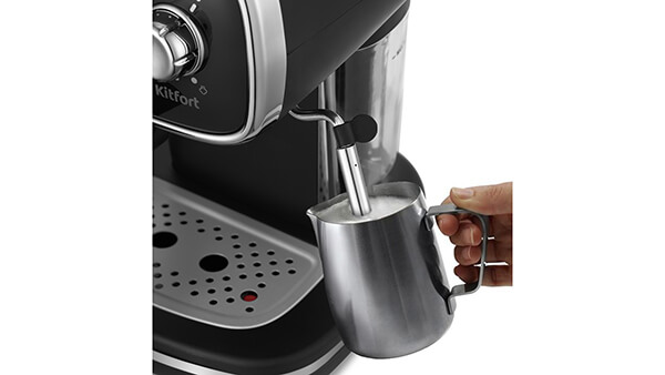 Капучинатор в кофеварке -это паровая трубка с насадкой панарелло. Трубку погружают в холодное молоко, включают подачу пара и взбивают молочную пенку. Приготовление не занимает много времени!