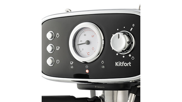 Пользоваться кофеваркой удобно и просто! На панели управления имеются все необходимые кнопки для работы, а также регулятор подачи пара. Термометр отображает приблизительную температуру бойлера.