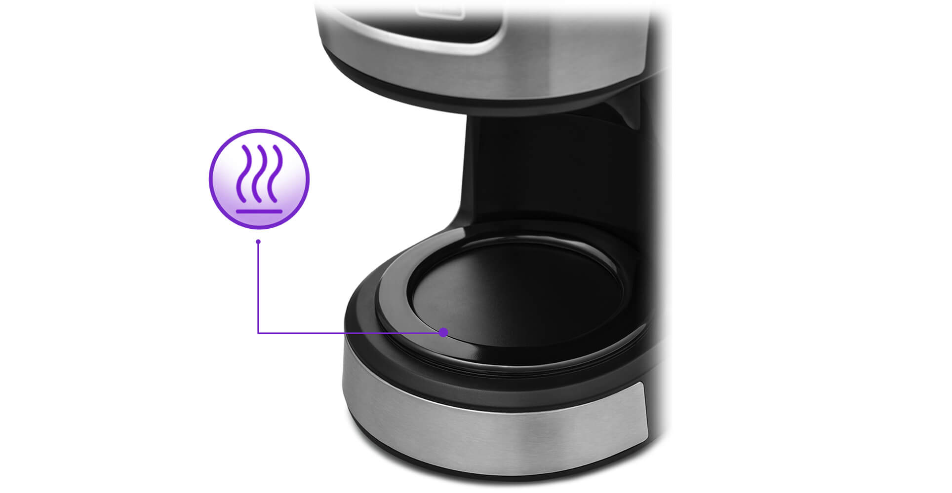 По окончании приготовления кофеварка перейдёт в режим подогрева. Платформа, на которой стоит кофейник с готовым кофе, будет горячей в течение 40 минут, затем кофеварка выключится.