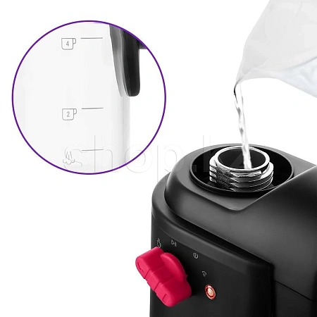 Вода заливается в бойлер, закручивающийся крышкой. В бойлере вода нагревается до температуры 92–95 °C. Приготовление кофе прекратится, когда вода в бойлере закончится. На кофейнике есть специальная шкала, показывающая, сколько кофе уже приготовлено.