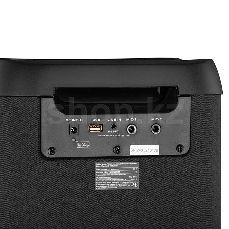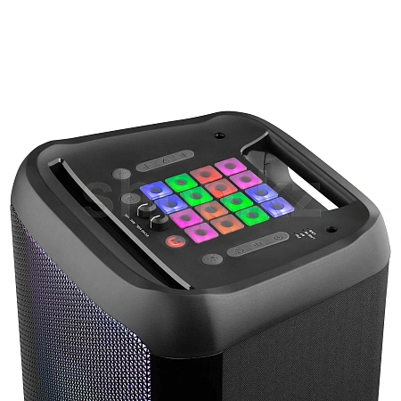 Пиковая мощность этой акустической системы – 200 Вт. Это означает что даже на открытых площадках большой площади все участники вечеринки будут качественно слышать каждую ноту звуковых композиций. А благодаря функции усиления басов драйв взлетит до небес. И не придется обращать внимание на время – мощный встроенный аккумулятор на 12 000 мА ч гарантирует, что гости вечеринки устанут раньше, чем акустика.