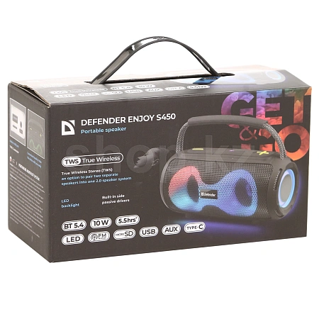 Defender Enjoy S450 - компактная колонка с современным Bluetooth 5.4 для стабильного соединения и поддержкой FM, USB, MicroSD, AUX. Чистый звук и эффектная подсветка создают атмосферу, а удобная мягкая ручка-веревка делает колонку идеальным спутником в поездках. Поддержка USB-накопителей и MicroSD-карт