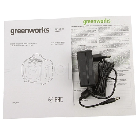 Беспроводная акустическая система аккумуляторная Greenworks GPT-MNBS (арт. 3503107), 24V / 220V поставляется без АКБ и ЗУ.