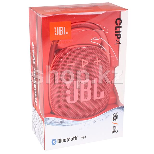 В ультрапортативном и ультрасовременном корпусе JBL Clip 4 удачно сочетаются разноцветная ткань и выразительные детали — колонка выглядит так же великолепно, как и звучит.