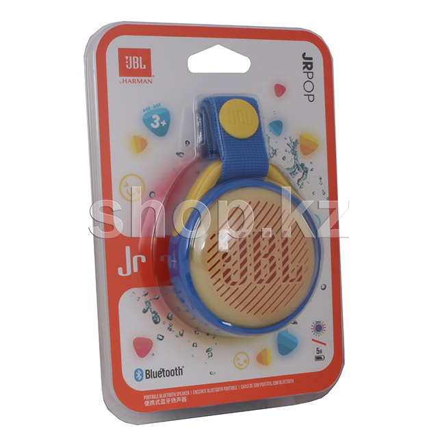 Пусть ребенок веселится как настоящая поп-звезда с беспроводной акустической системой JBL JR POP. Прочные материалы корпуса и защита от воды — все для веселья детей и спокойствия родителей. Перезаряжаемый аккумулятор позволяет веселиться до 5 часов без перерыва. Благодаря световым эффектам вечеринка станет еще ярче. Легкий вес, ремень для переноски и размер, продуманный специально для детских ручек. Колонка JBL JR POP с фирменным звучанием JBL настолько прочная, что переживет даже посещение игровой площадки.