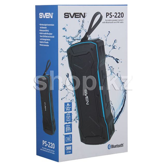 Портативная колонка SVEN имеет встроенное FM-радио, способна проигрывать музыку в карт памяти microSD, USB флешек и подключаться к источнику звука по проводу и без. По Bluetooth акустика держит уверенную связь с мобильным устройством на расстоянии до 10 метров.