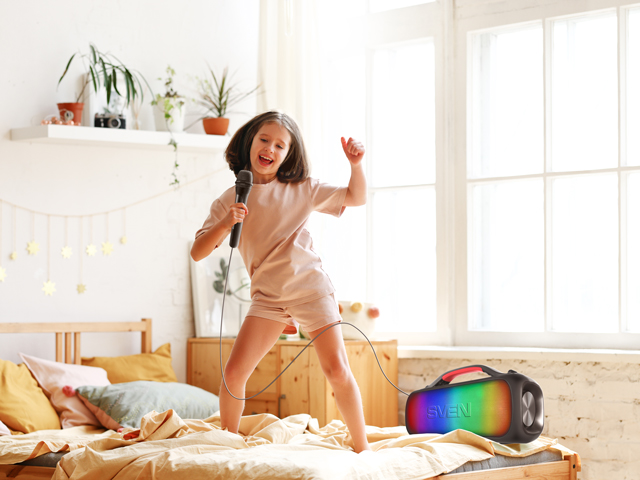 Раскройте свои таланты исполнителя, подключив микрофон к колонке. Настройте желаемую громкость звучания голоса на панели управления. Порадуйте близких живым звучанием любимых мелодий!