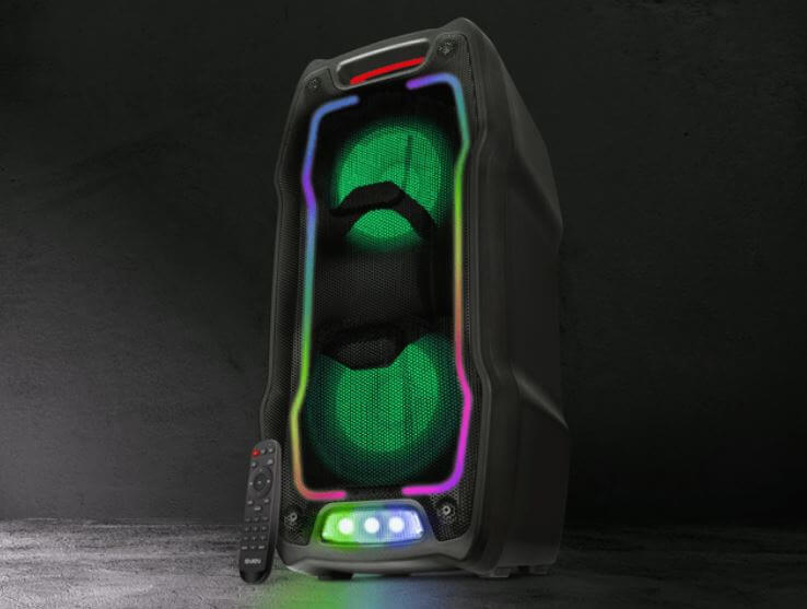 За качественный звук в широком частотном диапазоне отвечают твитеры диаметром 38 мм и крупные НЧ-динамики размером 145 мм, способные выдать невероятно плотный и эффектный бас. Подстроить звук под свой вкус поможет эквалайзер, а всю информацию о работе колонки можно увидеть на ярком и контрастном LED-дисплее. А посмотреть есть на что — количество встроенных опций и возможностей SVEN PS-730 поражает воображение.