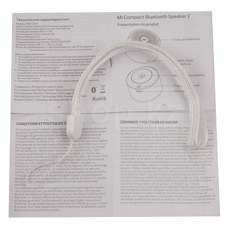 Xiaomi Mi Compact Bluetooth Speaker 2 MDZ-28-DI, White портативті динамигі