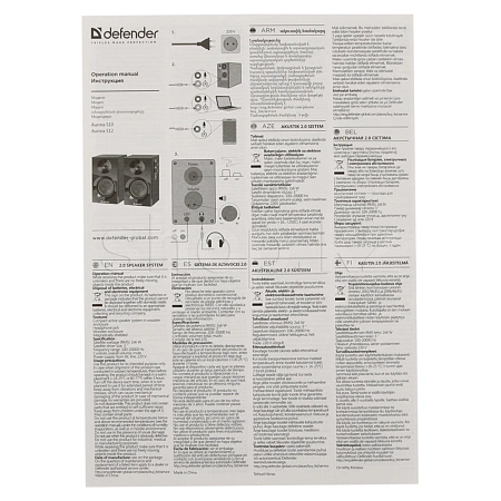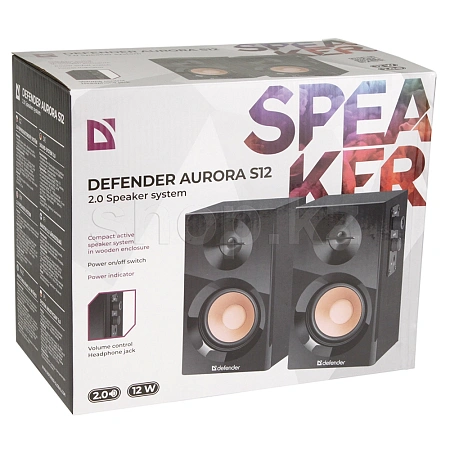 Defender Aurora S12 - активная стереосистема в экранированном деревянном корпусе. Для удобства использования на боковой панели присутствует выключатель, регулятор громкости, индикатор питания и разъем для наушников.