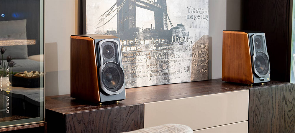 Модель оформлена в классическом стиле с деревянными боковыми панелями и наклоном фронтальной панели для достижения оптимальной диаграммы направленности.