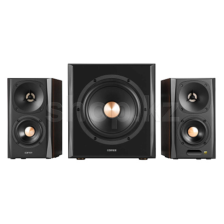 Алюминиевый 4-х дюймовый вуфер Edifier S360DB создавался на высокотехнологичном аналитическом комплексе, в работу по созданию этого динамика привлекались немецкие инженеры компании KLIPPEL. После нескольких месяцев конструкторских поисков получился уникальный динамик с чистым звуком, лишенный металлических призвуков и искажений. Не смотря на внешнюю схожесть с вуферами, использованными в других моделях, этот динамик отличается от всех конструкцией корзины и подвесом. Вуфер имеет довольно крупный гофр, что наводит на мысль о высокой амплитуде колебания и, соответственно, достаточно низкой возможной частоте воспроизведения.