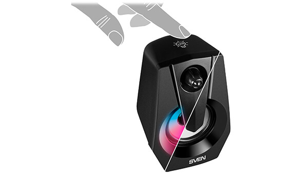 SVEN 370 получила оригинальную конструкцию и эффектную динамическую RGB-подсветку, насыщенная палитра переливающихся красок сделает удобным и красивым не только игровое, но и рабочее пространство, никакого рассинхрона, цвета появляются и исчезают на колонках параллельно - редкое явление для акустики этого ценового сегмента.