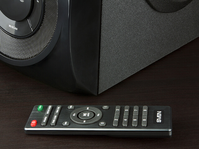 Регулировать громкость и изменять множество различных настроек акустической системы можно с помощью удобного пульта дистанционного управления.