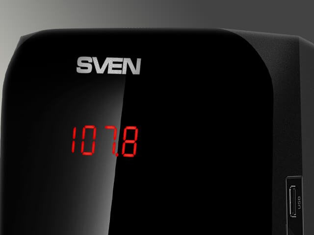 LED-дисплей информирует о частоте радиостанции, уровне громкости, времени трека при проигрывании с USB/SD. Панель управления позволяет находить трек по номеру, вводить частоту радиостанции, выбирать аудио вход и управлять множеством других функций.