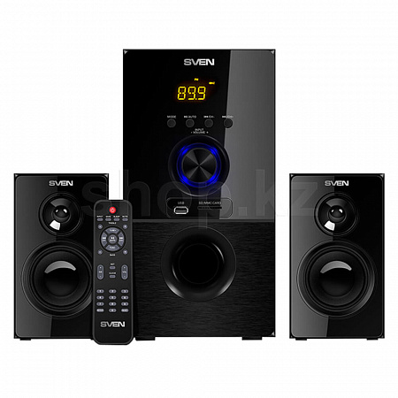Акустическая система 2.1 Sven совместима с DVD/Media-проигрывателями, PC и другими источниками звука, способна проигрывать музыкальные файлы с SD-карт и USB flash. Кроме того, в ней есть встроенное FM-радио, а музыкальные композиции можно переключать с помощью удобного пульта дистанционного управления. Цифровой LЕD-дисплей отображает время и всю необходимую пользовательскую информацию.