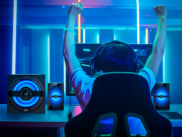 Яркая подсветка с оригинальными элементами дизайна создает футуристическое оформление пространства и погружает в атмосферу игрового поля.