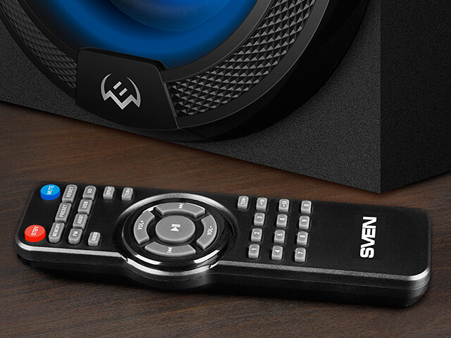 Регулировать громкость и изменять множество различных настроек акустической системы можно с помощью удобного пульта дистанционного управления.