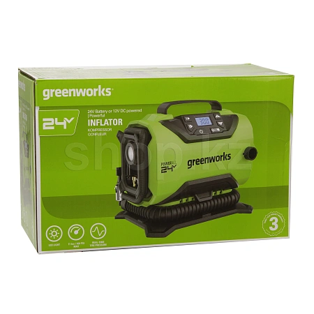 Многофункциональный компрессор Greenworks ACG301 – идеальное устройство для всех владельцев автомобилей, мотоциклов и для любителей активного отдыха. Работает от аккумуляторных батарей платформы Greenworks POWERALL 24V, а также от электросети автомобиля 12V. Конструкция компрессора Greenworks ACG301 сочетает в себе две технологии: поршневой компрессор высокого давления и мембранный компрессор низкого давления. Многофункциональный компрессор Greenworks ACG301 имеет пять (5) режимов работы: