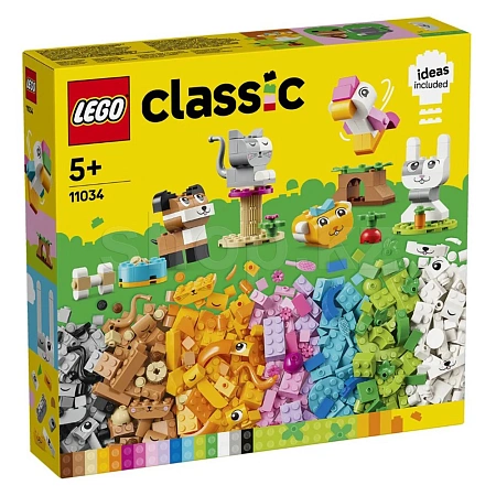 Любители животных в возрасте от 5 лет и старше могут удовлетворить свою страсть к домашним животным с помощью этого креативного набора для сборки животных. LEGO Classic 11034 - это вдохновляющее сочетание кубиков для сборки животных с простыми руководствами по созданию красочных игрушек с животными, которые можно быстро собрать. Это отличный способ стимулировать творческое конструирование детей. С помощью 450 кубиков LEGO, в том числе специальных деталей с глазами и ртами, а также простых пошаговых инструкций, дети смогут собрать собаку из миски и кости, кошку на подставке, хомяка с яблоком, кролика с морковь и птица на жердочке. Затем, используя включенные в набор предложения по альтернативным цветам, формам и функциям, дети смогут воссоздать своих питомцев по-новому и весело. По мере развития творческих навыков дети смогут воплощать в жизнь свои собственные идеи. В комплект входит руководство, содержащее 10 идей, которые помогут начать увлекательное занятие по сборке. Игрушки LEGO Classic полны идей и вдохновения и позволяют родителям делиться со своими детьми увлекательными сборками и этапами развития.