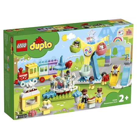 LEGO DUPLO вас ждет удивительная подборка аттракционов, управляемых вручную функций и семейных развлечений: от маленьких горок до невероятного колеса обозрения, от поездок на поезде до красочной карусели, и от хот-догов до меняющего цвет «радужного» фонаря