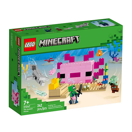 Конструктор Lego The Axolotl House порадует любителей игры Minecraft подводными приключениями с самым симпатичным существом из игры - аксолотлем. Дети смогут построить дом в форме аксолотля и присоединиться к подводному исследователю в поисках приключений. Крыша сооружения поднимается и открывает доступ к обустроенному пространству, в котором есть плавильная печь и губка для предотвращения протечек. А при нападении утонувшего зомби предлагается схватить меч и вместе с аксолотлями не допустить вторжения в дом. Набор включает в себя аутентичные фигурки Minecraft: подводный исследователь, утонувший зомби, дельфин, рыба фугу, 2 взрослых аксолотля и аксолотль в ведре.