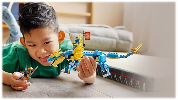 Дети могут усовершенствовать и Грозового дракона, и минифигурку Джея, чтобы помочь им победить змеиного воина Крылатую гадюку.