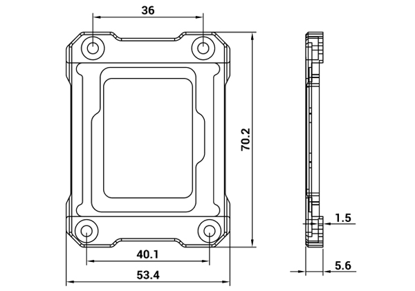 Процессоры последнего поколения Intel достаточно нагреваются, поэтому важно заранее позаботиться об их эффективном охлаждении. Контактная рамка процессора имеет специальный внутренний контур, способствующий смещению контактного давления от центра процессора на крайние участки в процессе сборки. Это позволяет избежать вогнутой кривизны IHS (Integrated Heat Sink – интегрированная тепло распределительная пластина) и улучшает контакт основы системы процессорного охлаждения, что способствует увеличению контактной поверхности для отвода избыточного тепла. Установить контактную рамку легко. В комплект входят все необходимые детали и подробная инструкция.