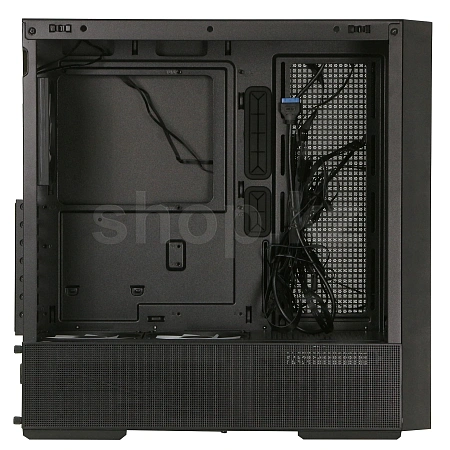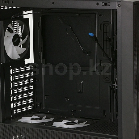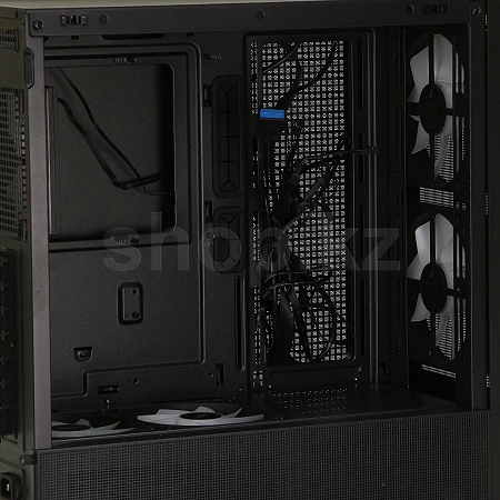 Предусмотрена установка до 11 вентиляторов размером 120 мм, а также поддержка 360-мм жидкостного радиатора сверху. Размещение блока питания в нижней передней части корпуса улучшает циркуляцию воздуха под вентиляторами и способствует эффективному отводу тепла от видеокарты. Утопленные нижние крепления для вентиляторов обеспечивают плотное прилегание и минимизацию вибраций, что положительно сказывается на общей эффективности охлаждения и уровне шума.