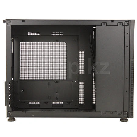 Корпус с уникальным дизайном. Скрытая укладка шлейфов, быстрый доступ к опорной пластине кулера, переднее внутреннее расположение блока питания и окно из закаленного стекла. Сменные передние перфорированные панели и ЖК дисплей, который можно установить как на переднюю панель, так и на боковую изнутри.