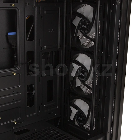 Цвет ARGB подсветки легко меняется одним прикосновением (кнопка на панели). Корпус оснащен тремя встроенными 120мм (6 пин) ARGB вентиляторами на передней сетчатой панели, которая активно вентилируется, и одним 120мм (6 пин) ARGB вентилятором на задней.