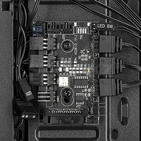 В комплектацию корпуса включен концентратор типа (А), который рассчитан на одновременное подключение до четырех ARGB вентиляторов и синхронизацию их работы с компонентами системы. Дополнительно можно приобрести кабель для подключения хаба к материнской плате.