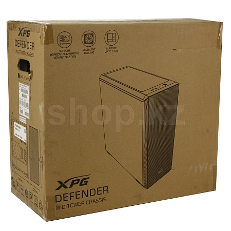 XPG DEFENDER имеет полноразмерный форм-фактор E-ATX и сетчатую переднюю панель. Он выпускается в черном и белом цвете, в комплекте с 3 вентиляторами XPG VENTO 120 мм.