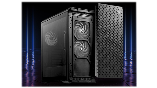 Установленный на XPG DEFENDER PRO блок питания также охлаждается за счет перфорированной камеры блока питания со съемным воздушным фильтром.