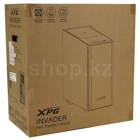 XPG INVADER - это изящный корпус формата mid-tower, конструкция которого не требует использования инструментов, с хорошей циркуляцией воздуха и фронтальным светильником RGB, настраиваемым с помощью комбинированного контроллера XPG Prime ARGB Combo Controller.
