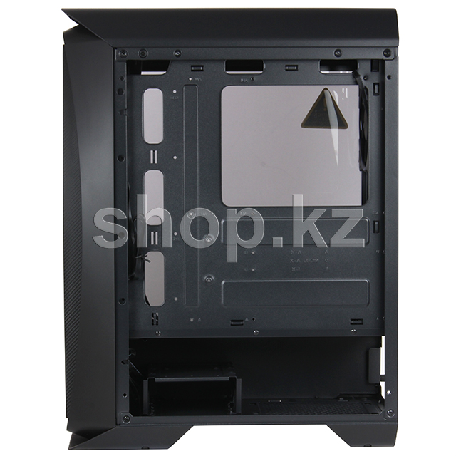 Боковая панель из закалённого стекла позволяет рассмотреть все компоненты системы. Сетчатый дизайн передней панели улучшает вентиляцию и демонстрирует передние вентиляторы со светодиодной подсветкой.