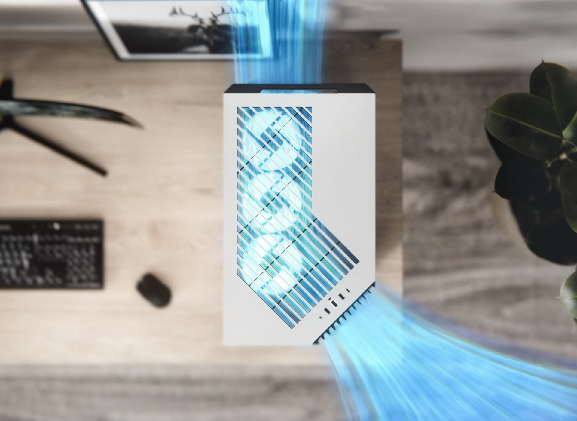 Эта инновационная конструкция в двухкамерном панорамном корпусе имеет угловой воздухозаборник 45°, который улучшает общую циркуляцию воздуха и эффективность охлаждения как графического процессора, так и центрального процессора, сохраняя при этом фирменный вид полностью закалённого стекла. Угловая воздухозаборная панель поддерживает установку трёх 12-сантиметровых, двух 14-сантиметровых и до двух 16-сантиметровых вентиляторов.