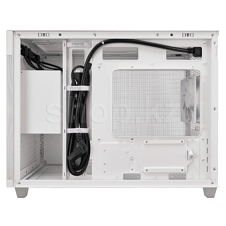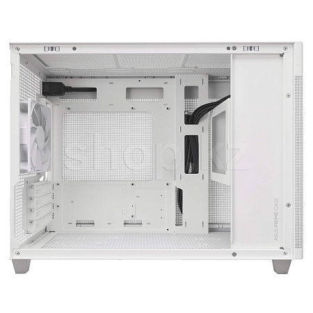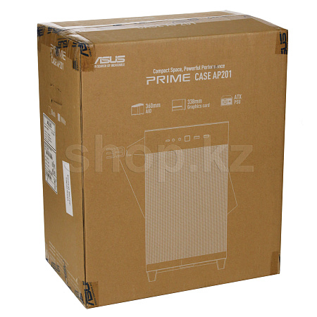 Корпус ASUS PRIME AP201: стильный дизайн, форм-фактор MICROATX, объем 33 л, боковые панели с безвинтовым креплением и сетчатой структурой, поддержка СВО с радиаторами 360 мм, видеокарт длиной до 338 мм и стандартных блоков питания ATX.