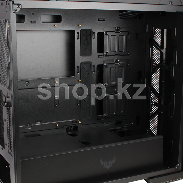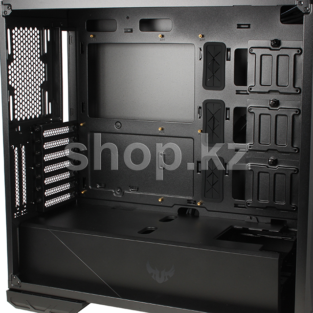 Корпус TUF Gaming GT501VC создан для того, чтобы сам процесс сборки компьютерной системы приносил удовольствие. В нем предусмотрено специальное пространство для аккуратного размещения шлейфов и заранее установлены подпорки для материнской платы, чтобы избавить пользователя от лишних затрат на дополнительный крепеж.