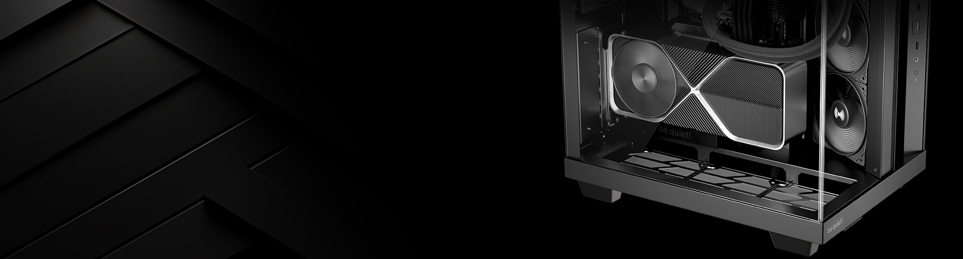 Боковой кронштейн вентиляторов с наклоном направляет больше воздуха к видеокарте, которая обычно требует максимум охлаждения. Углубление в виде не только стильно выглядит, но и способствует эффективному воздухозабору. Для удобства установки вентиляторов кронштейн выдвигается вверх. Специальный канал позволяет скрыть кабели для более элегантного вида. Конструкция нижнего отсека вентиляторов позволяет идеально выровнять их в уровень с корпусом.