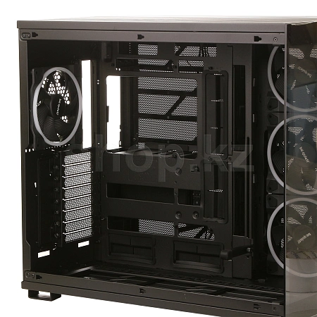 Имея 4 уже установленных вентилятора, в корпус можно установить в общей сложности до 10 вентиляторов, что делает Light Base 900 FX Black чрезвычайно универсальным корпусом. Благодаря просторной конструкции он может вместить одновременно два радиатора формата 420mm, ATX материнскую плату и мощную видеокарту. Благодаря двухкамерной конструкции накопители и кабели аккуратно размещаются сзади и не мешают потоку воздуха.