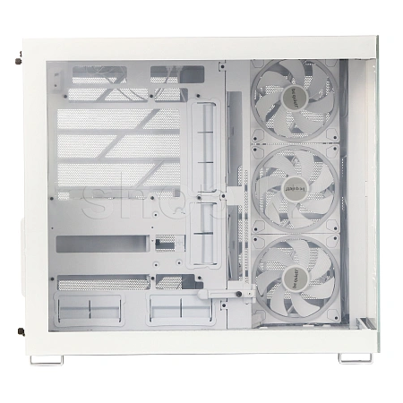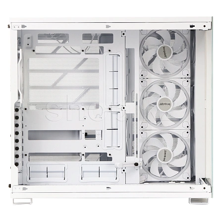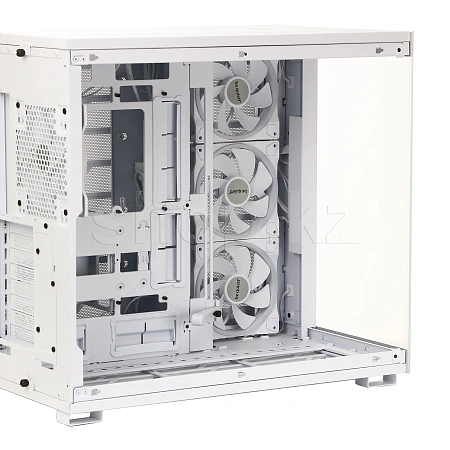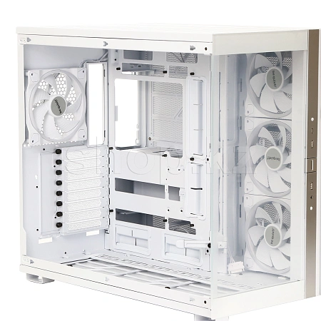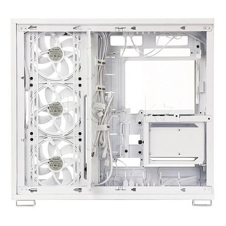 Имея 4 уже установленных вентилятора, в корпус можно установить в общей сложности до 10 вентиляторов, что делает Light Base 900 FX White чрезвычайно универсальным корпусом. Благодаря просторной конструкции он может вместить одновременно два радиатора формата 420mm, ATX материнскую плату и мощную видеокарту. Благодаря двухкамерной конструкции накопители и кабели аккуратно размещаются сзади и не мешают потоку воздуха.