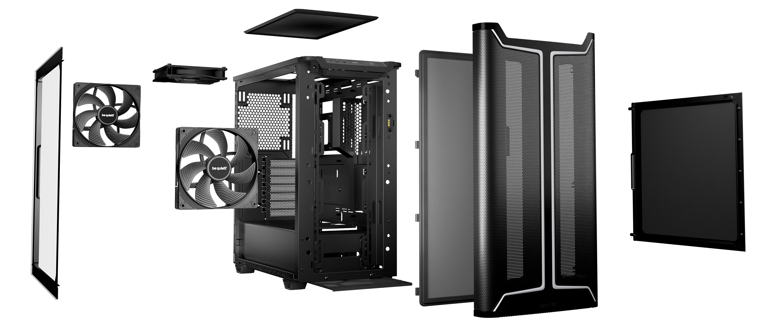 Несмотря на компактные размеры, Pure Base 501 DX Black обеспечивает достаточно места для high-end видеокарт и габаритных кулеров. Во фронтальной части можно установить три вентилятора или радиатор до 360mm, в то время как в верхней части поместятся до 2 вентиляторов или радиатор 240mm.